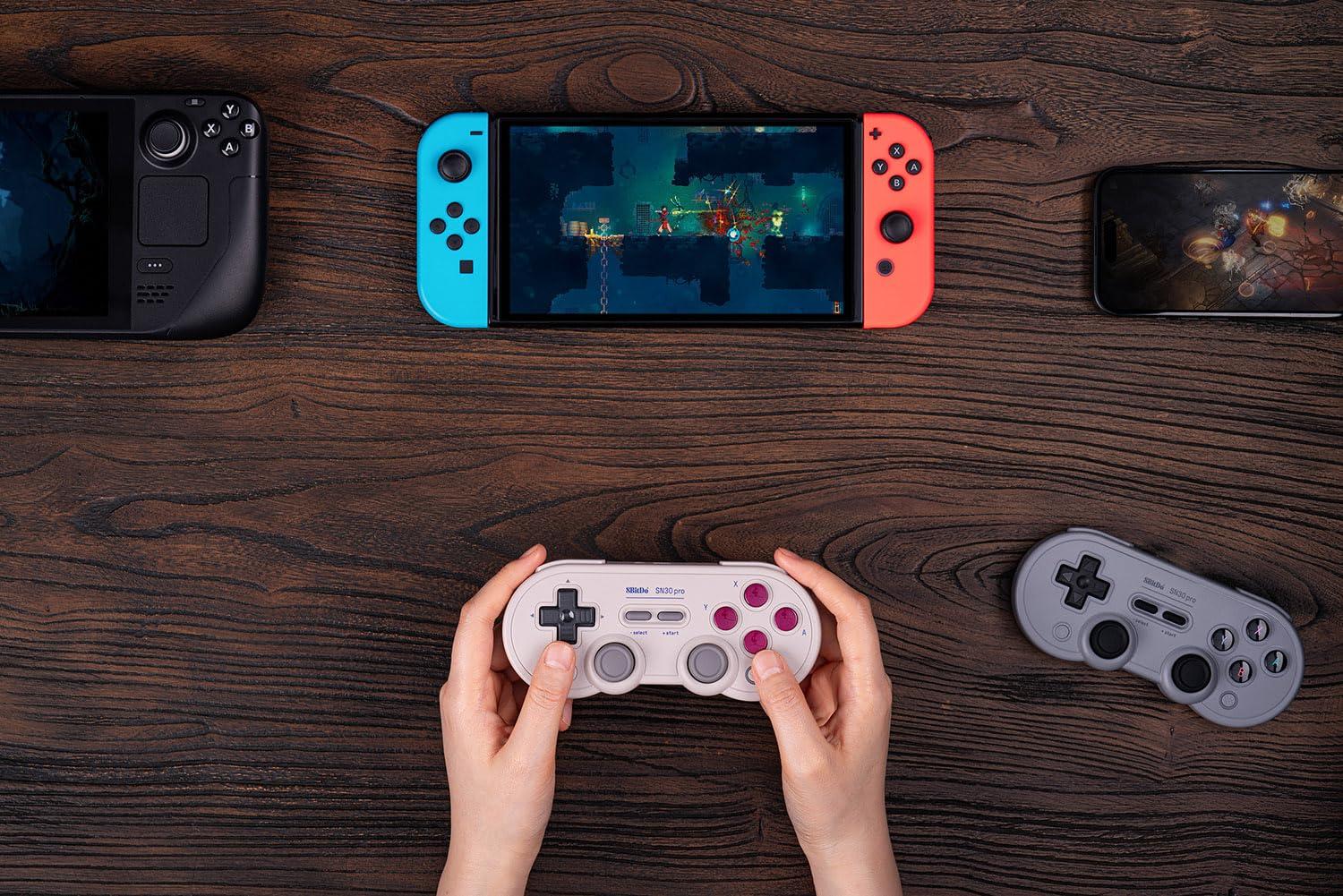 8Bitdo SN30 Pro Bluetooth Controller, Hall Effect Joystick Update, Compatible with Switch, PC, macOS, Android, Steam Deck & Raspberry Pi (Gray)(G Classic Edition)