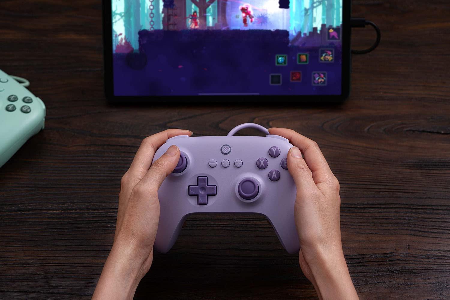 image8Bitdo Ultimate 2C Wired Controller for Windows PC and Android with 1000Hz Polling Rate Hall Effect Joysticks and Hall Triggers and Remappable L4R4 Bumpers MintLilac Purple